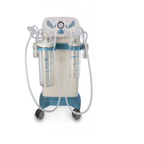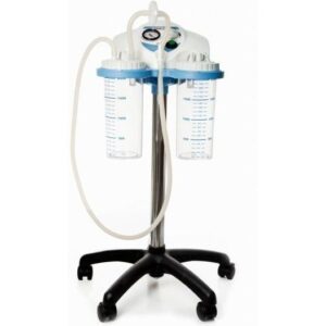 Its dual 2L polycarbonate autoclavable jars with overflow protection allow extended operation without frequent emptying. The unit is mounted on smooth-rolling castors with ergonomic handles for easy transport across wards and operating rooms. A front-panel vacuum regulator and illuminated switch provide intuitive control, while the quiet motor ensures minimal disruption in sensitive environments like ICUs.